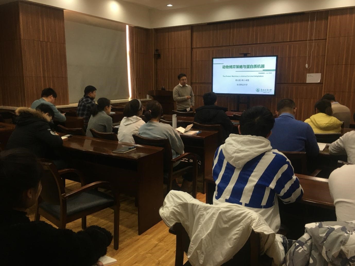 2022年1月19日,應(yīng)中國(guó)科學(xué)院濕地生態(tài)與環(huán)境重點(diǎn)實(shí)驗(yàn)室邀請(qǐng),東北林業(yè)大學(xué)楊仕隆教授做了題為“動(dòng)物博弈策略與蛋白質(zhì)機(jī)器”學(xué)術(shù)報(bào)告。報(bào)告通過(guò)騰訊會(huì)議同步直播,線下與線上參會(huì)人數(shù)30余人,會(huì)議由鄒元春研究員主持,武海濤副所長(zhǎng)致歡迎詞。