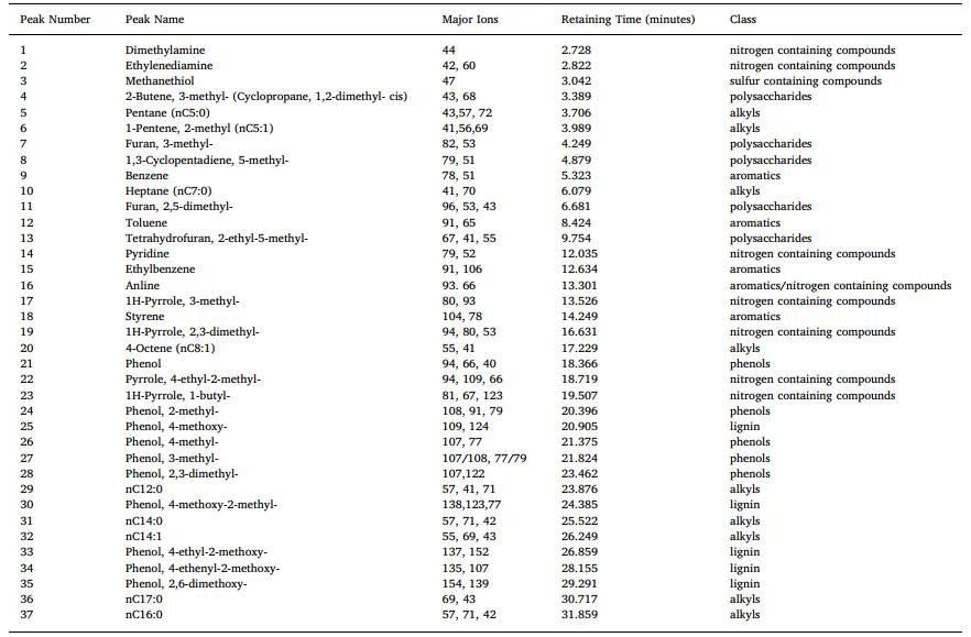 表1 蟻丘與對照土壤中Py-GC/MS產(chǎn)物