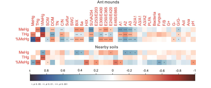 東北地理所濕地生物與環(huán)境學(xué)科組研究人員基于Py-GC/MS與3D-EEM等技術(shù),對比分析了蟻丘土壤與對照土壤中有機(jī)碳、DOM及其分子結(jié)構(gòu)特征,研究了螞蟻擾動對Hg及其甲基化過程的驅(qū)動機(jī)制。