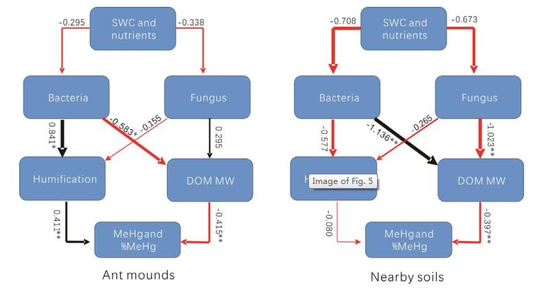 圖5 揭示蟻群對汞甲基化過程影響的結(jié)構(gòu)方程模型