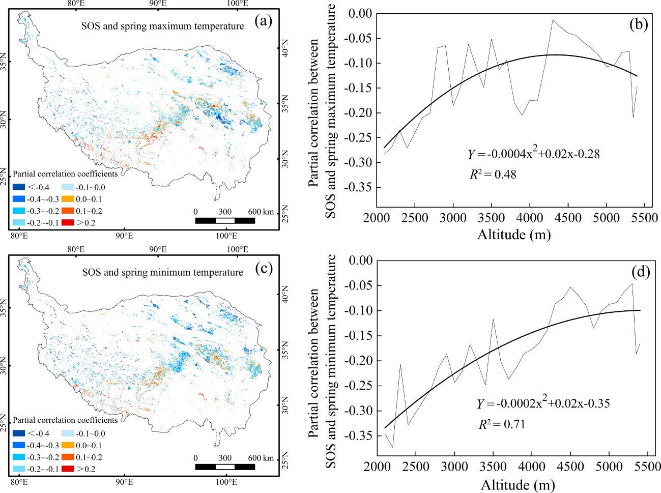 圖2青藏高原沼澤植被春季物候與氣溫相關性及其隨海拔高度的變化