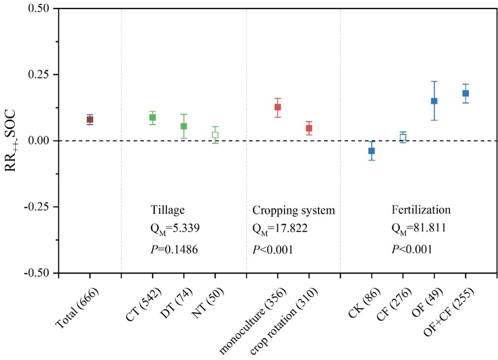 圖1. 土壤管理類型對有機(jī)碳含量影響的平均效應(yīng)大小