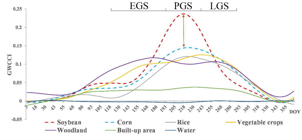 圖2. 不同農作物和土地利用GWCCI時間序列變化圖