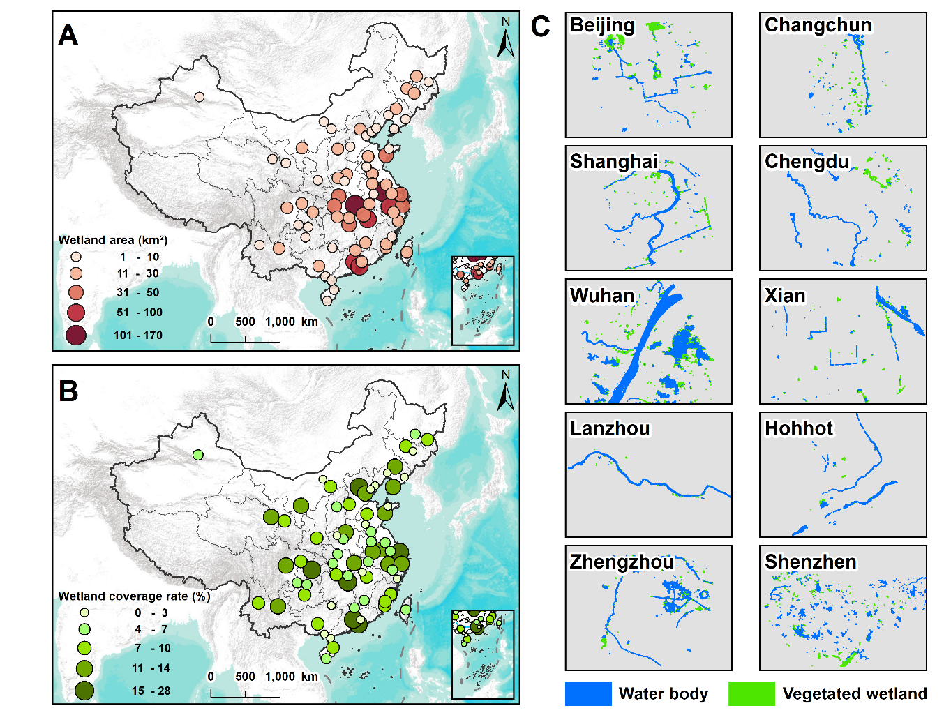 該研究實(shí)現(xiàn)了中國主要城市過去40年間濕地的空間分布和年際變化監(jiān)測,可為我國城市濕地保護(hù)及城市可持續(xù)規(guī)劃與管理提供數(shù)據(jù)支撐和決策依據(jù)。同時(shí),該研究可為濕地相關(guān)的聯(lián)合國可持續(xù)發(fā)展目標(biāo)(SDGs)的評估提供可靠的數(shù)據(jù)支撐與可推廣的研究方法,直接為SDG6.6.1(與水相關(guān)的生態(tài)系統(tǒng)的變化)的評估提供可靠的、最新的數(shù)據(jù),并為SDG11.5(減少洪水等災(zāi)害對城市地區(qū)的重大影響)等的評估提供重要參考。
