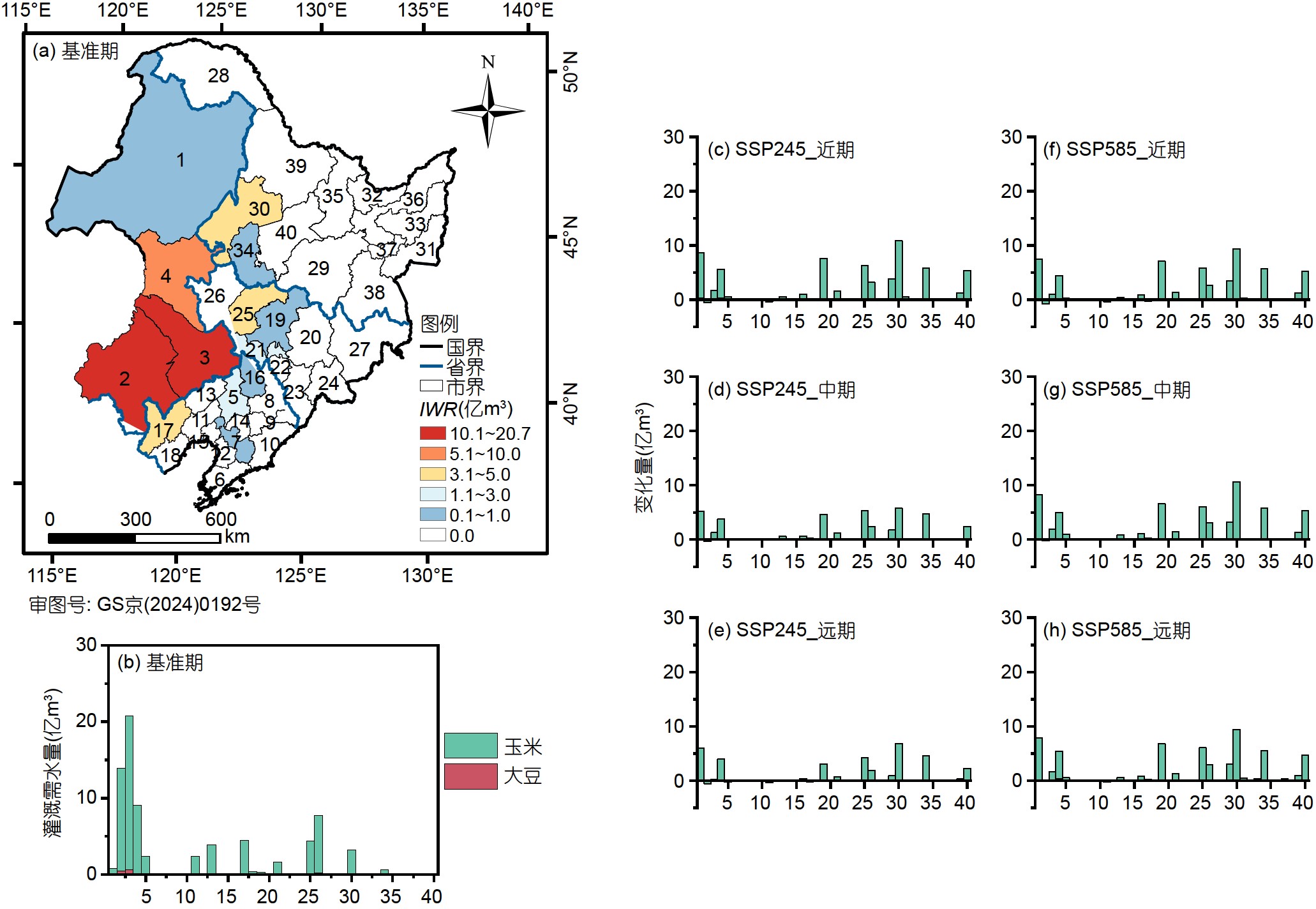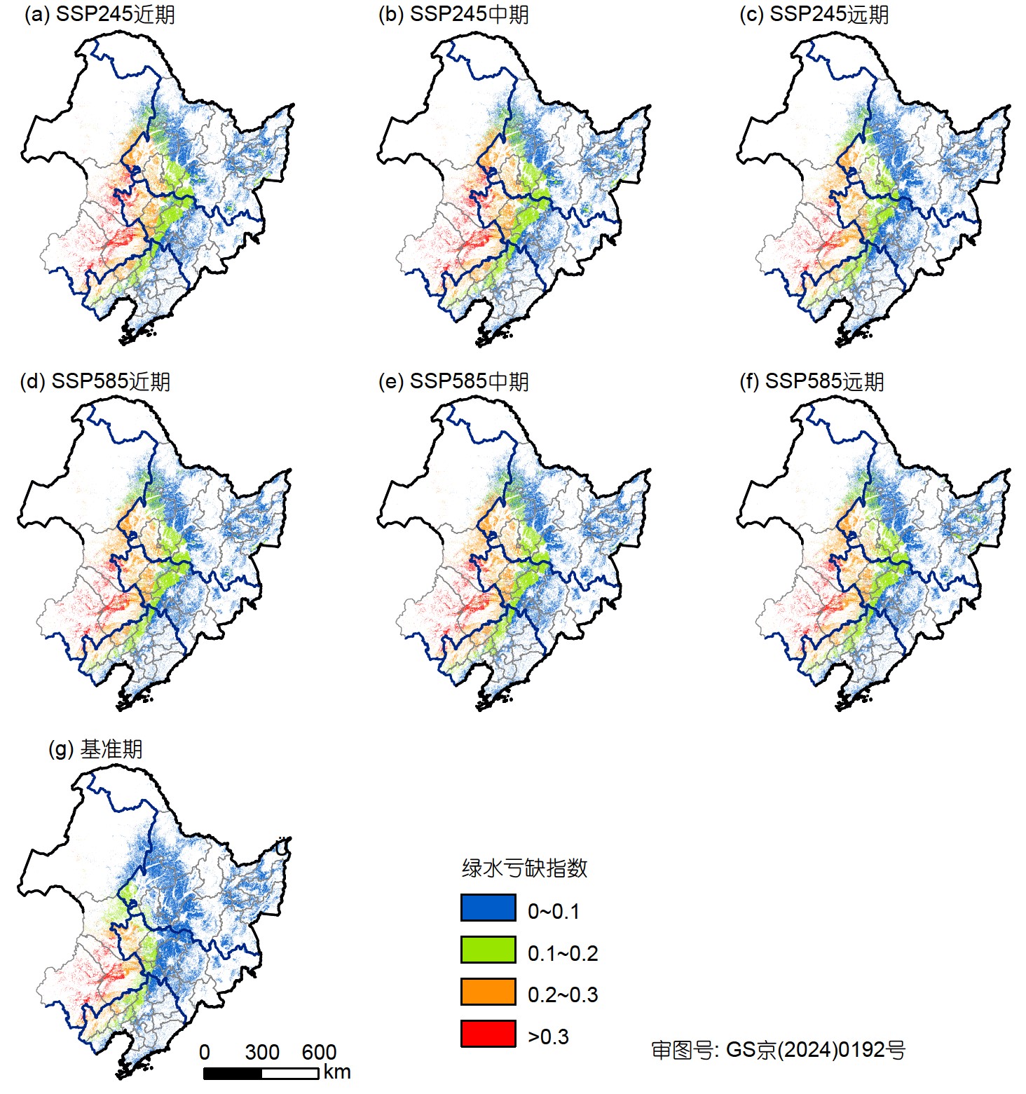 圖1. 未來氣候情景下東北地區旱作物綠水安全風險等級空間分布