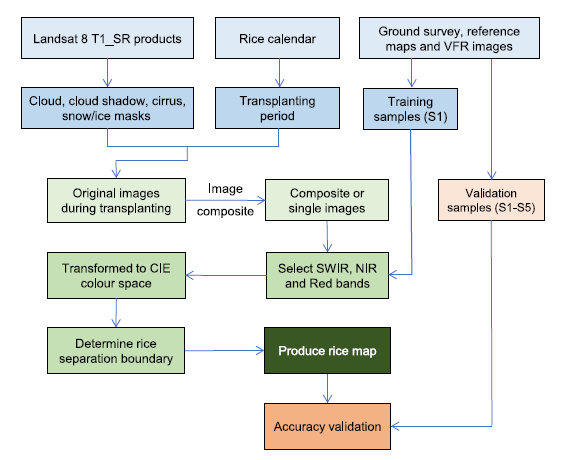 圖2?研發(fā)的RiceTColour技術(shù)路線及水稻遙感制圖結(jié)果
