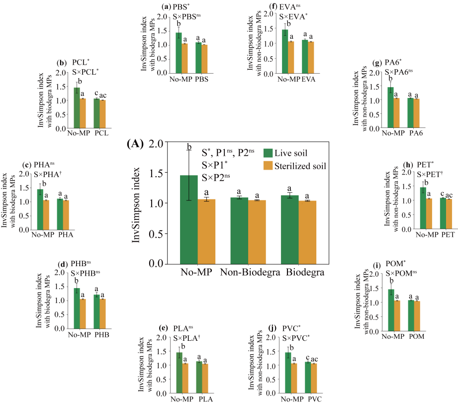 可生物降解塑料雖然被視為替代傳統(tǒng)塑料以緩解土壤塑料污染的綠色替代品,但由于它們可能比傳統(tǒng)塑料更快地分解成微塑料,從而對(duì)陸地生態(tài)系統(tǒng),特別是植物生態(tài)系統(tǒng)構(gòu)成額外的威脅。不僅如此,微塑料被認(rèn)為會(huì)破壞植物-土壤生物的相互作用,進(jìn)一步導(dǎo)致植物生長(zhǎng)受到影響。然而,現(xiàn)有研究多集中在個(gè)體植物層面,關(guān)于微塑料對(duì)植物群落多樣性和生產(chǎn)力方面的潛在影響仍鮮有報(bào)道。因此,微塑料對(duì)植物群落造成的生態(tài)后果存在著極大的不確定性。