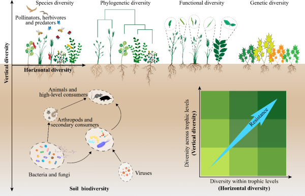 圖1水平和垂直方向的多樣性均可以增加群落對植物入侵的抵抗力