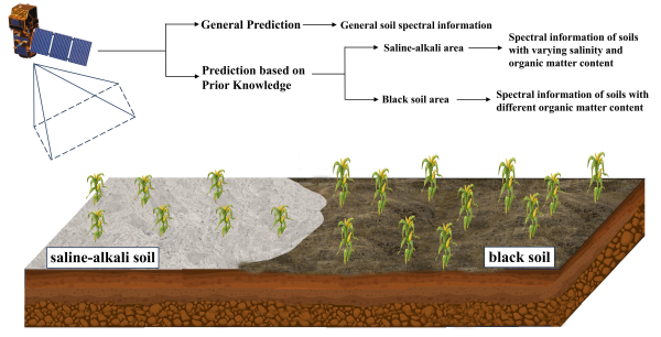 圖1. 基于先驗知識并結合鹽堿和黑土區(qū)劃分的光譜信息選取示意圖