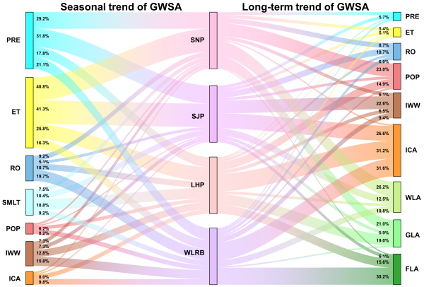 圖4 重點(diǎn)區(qū)域地下水儲量變化的關(guān)鍵驅(qū)動因素解析