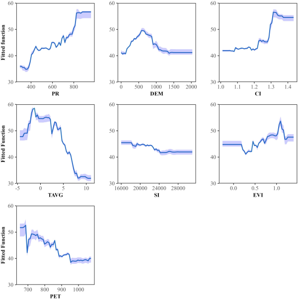 圖1東北地區(qū)關(guān)鍵環(huán)境因子對(duì)SOC儲(chǔ)量的非線性響應(yīng)特征