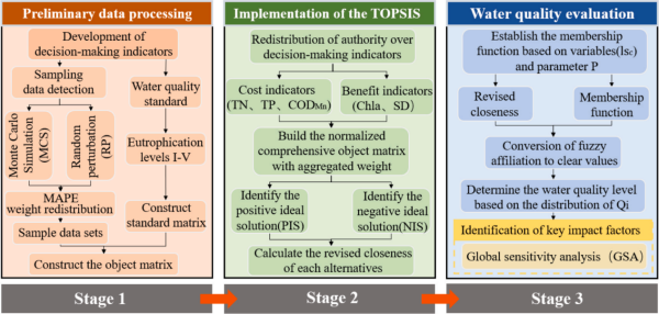 針對以上不足和問題,中國科學院東北地理與農業生態研究所科研人員基于121個采樣點構建了MCS-RP-TOPSIS-GSA綜合評估模型,減少了采樣頻率不足與操作誤差導致的不確定性,重新分配指標權重,最終通過隸屬函數(最優系數P=1.15)實現富營養化等級劃分,構建了區域水體富營養化評價指標Qi,模型精度顯著高于傳統TLI模型(圖1)。評價了多水體類型的富營養化對比框架,系統分析多好尺度驅動因素的耦合作用。結果表明中西部區域水質低于東部地區,深水湖庫的富營養化狀態優于淺水湖泊優于河流,TN、TP和CODMn是影響東北黑土區地表水富營養化的主要敏感因子。此外,基于480個全季節穆棱-興凱湖流域逐月水質數據,采用機器學習篩選關鍵指標,采用8種聚合函數優化出最優函數,結合ROC方法分配指標權重,降低評估的不確定性,構建改建的WQI模型來評估湖泊-流域的水質狀態(圖2)。結合結構方程模型(SEM),首次明確不同季節水質惡化的主導驅動因素即夏-秋季以人類活動(灌溉面積、施肥量)為主,冬季-春季以自然因素(氣溫、降水、流量)為主,量化了自然與人類活動對水質的耦合影響。
