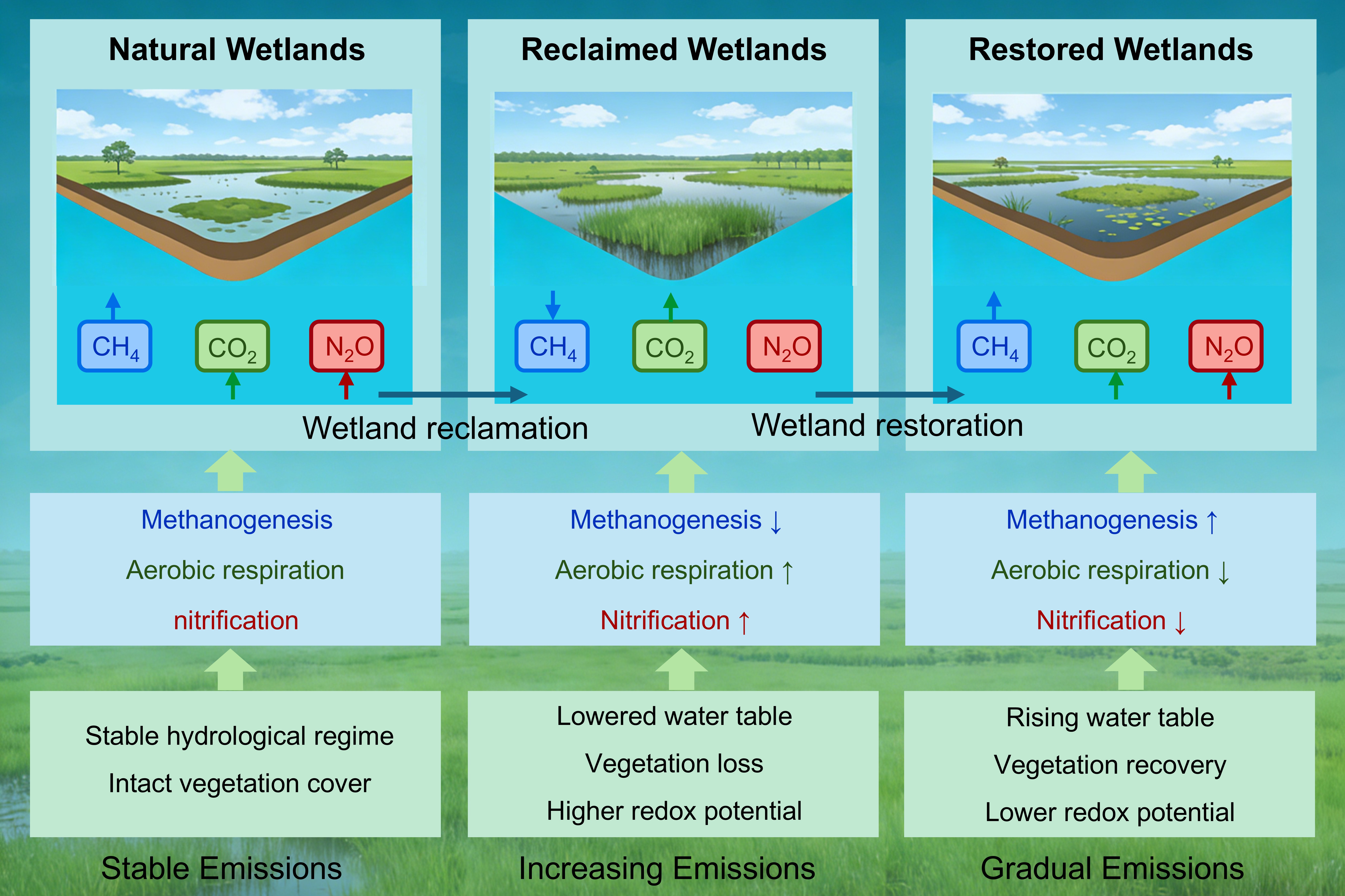 濕地是陸地生態系統中重要的碳庫,在全球碳循環和氣候變化調節中發揮著關鍵作用,同時也是甲烷(CH4)、氧化亞氮(N2O)和二氧化碳(CO2)等溫室氣體的重要來源。濕地景觀變化會顯著改變植被狀況和水文條件等,進而影響溫室氣體排放過程。然而,受限于觀測數據分散、研究區環境背景差異大、以及研究方法間的不一致等問題,當前對于全球尺度濕地景觀變化如何影響溫室氣體排放仍缺乏系統的定量認知,影響了全球變化背景下的濕地適應性管理與調控等。