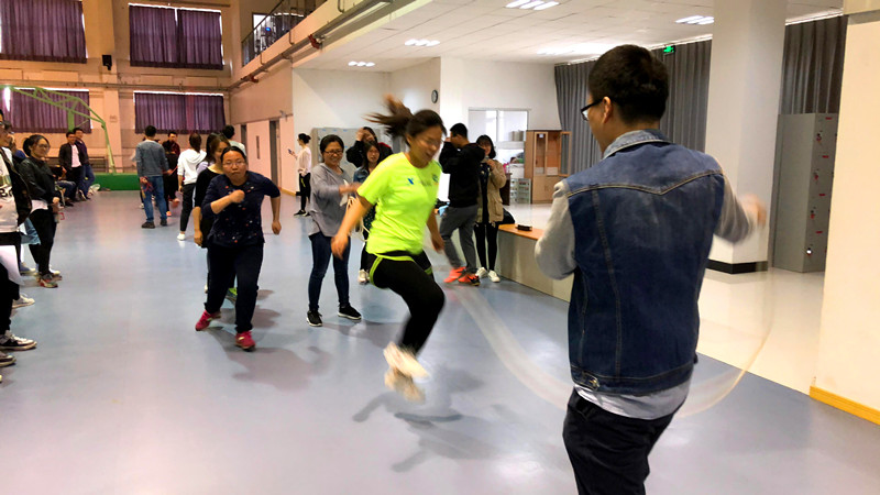 本次比賽包括團(tuán)體跳繩和拔河兩個(gè)項(xiàng)目,以班級(jí)為單位分為四支代表隊(duì)參賽。在首先進(jìn)行的團(tuán)體跳繩比賽中,伴隨著繩起繩落,選手們次序井然、你來我往,輕盈敏捷的身手不時(shí)博得場外觀眾的陣陣掌聲。最終,2016級(jí)博士代表隊(duì)技高一籌,獲得了團(tuán)體跳繩比賽的第一名。