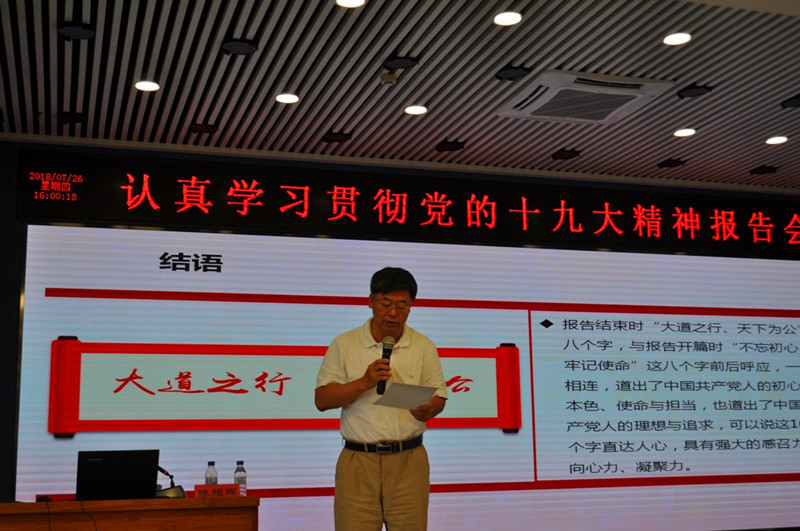 7月26日下午,為把學(xué)習(xí)宣傳貫徹黨的十九大精神不斷引向深入,東北地理所召開(kāi)學(xué)習(xí)十九大精神專(zhuān)題報(bào)告會(huì)(哈區(qū)視頻),大會(huì)邀請(qǐng)黨的十九大精神吉林省委宣講團(tuán)成員、吉林日?qǐng)?bào)社總編輯陳耀輝做專(zhuān)題報(bào)告,全所190余位黨員和職工參加報(bào)告會(huì)。