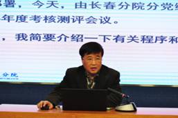 長春分院組織人事處處長于學鋒現場組織了對所領導班子和班子成員的考核測評。他詳細介紹了考核程序、考核內容,對如何評議進行了說明。