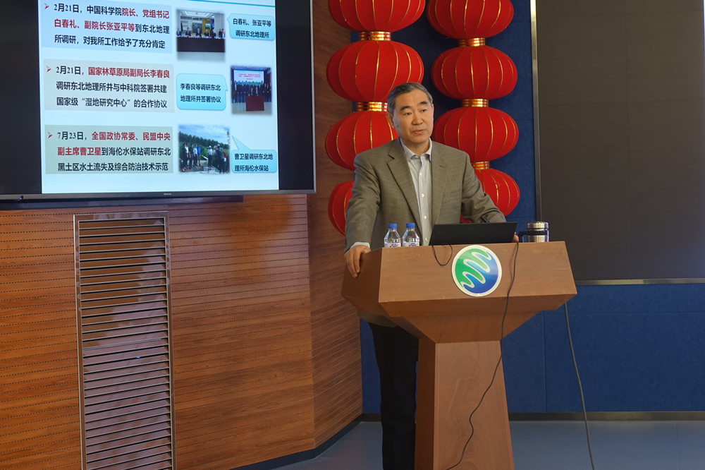 何興元所長代表領導班子作2019年度工作總結。他從研究所“一三五”規劃進展、人才建設和研究生培養、科研工作進展、綜合管理與服務等四個方面詳細介紹了一年來研究所各項工作進展。2019年,恰逢建國建院七十周年,院領導多次蒞臨指導指導工作;超額完成研究所“一三五”規劃年度目標,“結構性調整、內涵式發展”學科評估有序開展,3學科進入ESI全球前1%行列;2位青年才俊擔任國家項目首席和獲得優秀青年基金資助,2人分別獲院人才計劃擇優支持和終期評估優秀;獲批國家重點研發項目1項、科技基礎性工作專項項目1項;SCI文章數量再創新高,高質量、高被引論文顯著增加;“北方城市森林生態服務功能研究”獲吉林省科技進步一等獎;國家級“濕地研究中心”成立并揭牌,新獲批院水源地生態農業工程實驗室,三江站被評為科技部優秀臺站,大安站、興凱湖站入選農業農村部“國家農業科學觀測實驗站”。