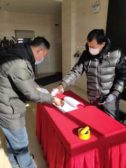 巡查過程中,進入辦公樓比平時多了好幾道審核程序,出入人員必須佩戴口罩,且門口會有佩戴口罩的專職安保人員進行測溫、登記。所領導詳細查看了出入記錄并要求一定從嚴審核,把好安全關。