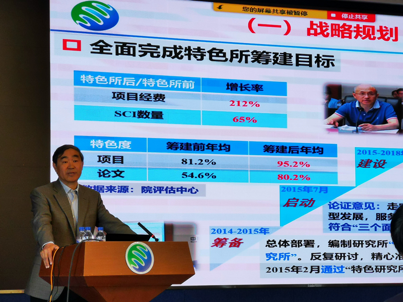 東北地理所所長何興元代表所領導班子做了任期屆滿述職報告。在報告中,何興元從任期目標完成情況、一三五規劃進展、存在問題、體會與建議等方面,對本屆領導班子任職以來的工作和取得的成績進行了回顧和全面總結。5年來,在習近平新時代中國特色社會主義思想指導下,在院黨組和長春分院分黨組的正確領導下,所領導班子以推進“農業特色研究所”建設為核心,緊緊圍繞院黨組提出的“率先行動”目標和“一三五”發展戰略,凝練研究所的重點學科方向,通過前瞻謀劃,精準施策,各項事業快速發展,全面并超額完成所長任期目標。科研經費大幅增長,主持國家重大項目11項,“杰青”、“優青”項目不斷取得突破;獲國家科技進步二等獎4項、省部級一等獎14項;SCI論文數實現由年均100篇到300篇的連續突破,高水平論文比例超過40%;3個學科進入ESI全球前1%;新引進國家級和院級人才計劃7人,新增國家重大項目首席10人;成立國家濕地研究中心,獲批作物分子計育種國家地方聯合工程中心、中科院工程實驗室;建立了以“三重大”為導向的差異化薪酬體系和綜合分類考評體系,進所總經費和職工收入顯著提升;扎實推進“三嚴三實”專題教育和“不忘初心、牢記使命”主題教育等,深化黨風廉政建設及廉潔從業風險防控體系建設。