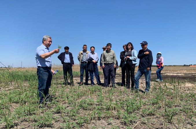 5月27日上午,調(diào)研組來(lái)到大安堿地生態(tài)試驗(yàn)站,重點(diǎn)調(diào)研了國(guó)家重點(diǎn)研發(fā)計(jì)劃項(xiàng)目實(shí)施進(jìn)展情況和鹽堿退化草地生產(chǎn)力提升萬(wàn)畝示范區(qū)。梁正偉研究員等科研人員詳細(xì)匯報(bào)了大安站科研監(jiān)測(cè)、平臺(tái)建設(shè)和成果產(chǎn)出情況,并實(shí)地介紹了耐鹽堿植物篩選、耐鹽堿水稻雜交育種、蘇打鹽堿地改良劑“脫堿3號(hào)”、 鹽堿地植被恢復(fù)與水肥高效調(diào)控的研發(fā)與應(yīng)用情況。考察組還參觀了吉林省直屬機(jī)關(guān)工會(huì)工作委員會(huì)設(shè)立的梁正偉 “勞模創(chuàng)新工作室”,高度評(píng)價(jià)了近10年來(lái)大安站主持實(shí)施了國(guó)家項(xiàng)目3項(xiàng),獲得國(guó)家科技進(jìn)步二等獎(jiǎng)2項(xiàng)等豐碩成果。
