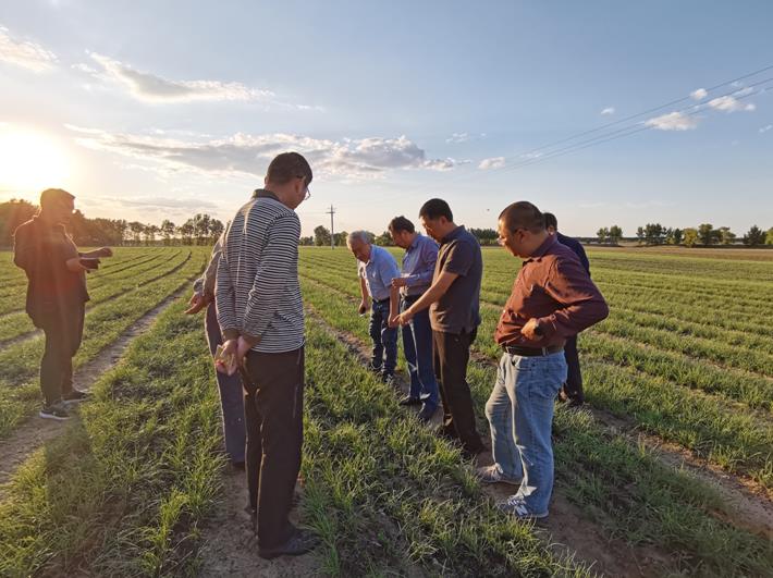 5月26日,調(diào)研組驅(qū)車300公里來(lái)到長(zhǎng)嶺草地農(nóng)牧生態(tài)研究站,就松嫩草地優(yōu)質(zhì)牧草生產(chǎn)和畜牧業(yè)持續(xù)發(fā)展問(wèn)題開(kāi)展調(diào)研。站長(zhǎng)周道瑋研究員和吉林省畜牧業(yè)管理局長(zhǎng)嶺種馬場(chǎng)場(chǎng)長(zhǎng)張鐵軍陪同了調(diào)研。周道瑋重點(diǎn)介紹了秸稈添加+噴淋沖洗、覆沙+噴淋沖洗等關(guān)鍵技術(shù),鐘榮珍研究員介紹了秸稈養(yǎng)羊舍飼模式和肉質(zhì)改善關(guān)鍵技術(shù)。隨后,調(diào)研組來(lái)到長(zhǎng)嶺站與吉林省圣一金地生物質(zhì)開(kāi)發(fā)有限公司合作建立的草地農(nóng)牧業(yè)示范基地,公司董事長(zhǎng)龔政介紹了雙方合作創(chuàng)建的“小冰麥+燕麥草”、“燕麥+燕麥草”一年二季作物種植模式和20萬(wàn)畝退化草原高效流轉(zhuǎn)利用情況。調(diào)研組一行就種植技術(shù)的經(jīng)濟(jì)效益、市場(chǎng)前景進(jìn)行了詳細(xì)了解,并圍繞“噴淋+秸稈+生物菌”技術(shù)、智慧農(nóng)業(yè)管理平臺(tái)和食用菌菌絲化多功能秸稈飼料研發(fā)進(jìn)行了深入座談。
