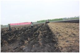 海倫市是我國著名的產(chǎn)糧大縣,但是今年春季持續(xù)低溫多雨,導(dǎo)致截止5月25日還有70%以上地塊沒有進(jìn)行播種,其中有50%以上的地塊沒有進(jìn)行秋季整地。針對今年春季低溫、多雨、低洼地塊播種困難,秸稈還田,黑土肥力退化,耕層變淺和犁底層變厚等問題,海倫綜合試驗(yàn)站與海倫市相關(guān)部門配合,采用秸稈間隔深埋還田技術(shù),利用七鏵犁(液壓翻轉(zhuǎn)),將秸稈翻扣在土壤35 cm深處,在打破土壤犁底層,增加土壤耕層厚度,提高土壤肥力的同時,有利于土壤透水透氣快速升溫,為創(chuàng)造一個良好的作物播種和出苗條件提供基礎(chǔ),為保障今年的糧食產(chǎn)量提供必要條件。