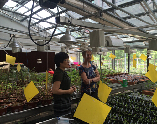 2015年6月17日美國加州大學戴維斯分校Valerie Williamson教授應農田有害生物控制學科組王從麗研究員邀請,受國家外國專家局資助來所進行合作研究和學術交流。6月18日下午在哈區進行學術報告“The chemical ecology of root-knot nematode targeting to plant entry sites”,長春視頻,報告主要從根結線蟲基因組學、遺傳機制、北方根結線蟲的遺傳學、線蟲的寄主范圍和抗性、根結線蟲怎樣獲得侵染新寄主的能力、化學信號(線蟲對寄主的反映及相互作用)等內容進行交流。所里的很多科研人員和研究生們都積極參加并踴躍發言,達到了學術交流的目的。王從麗研究員向美國專家介紹了實驗室的研究方向及進展,專家對該學科的幾方面研究進行了充分討論,并給予充分的肯定,為了學科組今后更順利和更好的發展,專家提出了寶貴的建議,并對研究生的研究方案和方法進行了詳細的指導。Williamson教授又到中國科學院海倫生態實驗站進行了參觀訪問,韓曉增站長詳細地為她介紹了海倫試驗站長期定位實驗,使Willamson教授對東北黑土及其相關的研究有了更深的了解。Williamson教授和王從麗研究員在線蟲識別植物信號的鑒定與應用方面有了更深一步的討論,她的訪問對促進中國科學院東北地理與農業生態研究所與美國加州大學的持續合作奠定了基礎。