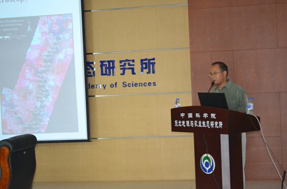 2015年7月22日,我所海外特聘研究員、中國科學(xué)院創(chuàng)新團隊國際合作伙伴計劃“東北典型生態(tài)系統(tǒng)生態(tài)過程與服務(wù)”海外成員---美國印第安納大學(xué)李林教授來所工作,與遙感中心科研人員和研究生進行了廣泛的交流,并做了題為“Inversion of Inherent Optical Properties for Estimating Phycocyanin and Chlorophyll of Inland Waters”的精彩學(xué)術(shù)報告。