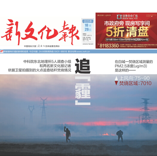 10月25、26日,長(zhǎng)春連續(xù)出現(xiàn)“嚴(yán)重污染”天氣,我所區(qū)域大氣環(huán)境學(xué)科組張學(xué)磊、張世春等科研人員從10月27日至30日開(kāi)展了連續(xù)四天的吉林省內(nèi)秸稈露天焚燒及空氣污染現(xiàn)狀調(diào)研,29日《新文化報(bào)》以頭版和專(zhuān)版報(bào)道了本次調(diào)研的部分結(jié)果,隨后新華網(wǎng)、新浪網(wǎng)、中新網(wǎng)、中國(guó)網(wǎng)等國(guó)內(nèi)各主要網(wǎng)絡(luò)媒體對(duì)該報(bào)道進(jìn)行了大量轉(zhuǎn)載。