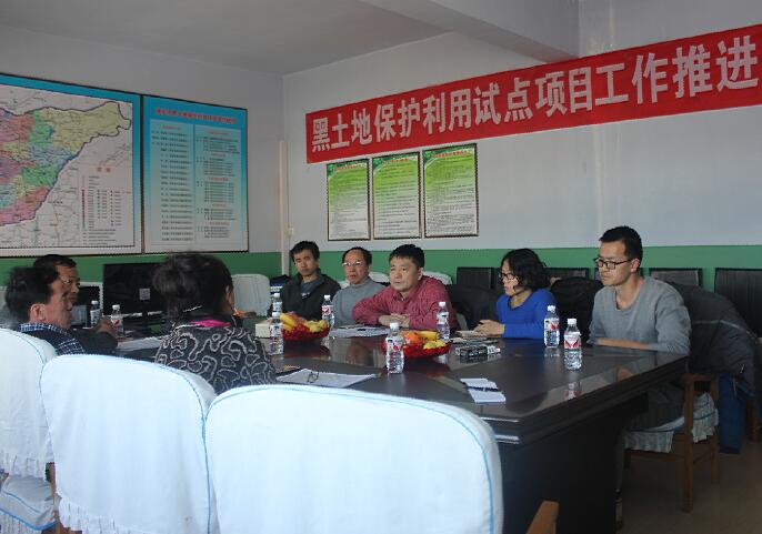 在海倫市農(nóng)業(yè)技術(shù)推廣中心,進(jìn)一步推進(jìn)了農(nóng)業(yè)部東北黑土地保護(hù)項(xiàng)目在海倫市的實(shí)施工作。作為東北黑土保護(hù)項(xiàng)目專家組組長,韓曉增研究員聽取了海倫市農(nóng)業(yè)技術(shù)推廣中心吳全偉副主任對(duì)2015年項(xiàng)目實(shí)施情況的介紹,并對(duì)玉米秸稈還田和有機(jī)施用等相關(guān)技術(shù)進(jìn)行了指導(dǎo),同時(shí)指出了玉米秸稈深混還田應(yīng)該使用大馬力拖拉機(jī)配合液壓翻轉(zhuǎn)犁進(jìn)行翻扣深混,以增加秸稈還田的深度、避免因表層秸稈還田量過多引起的春季失墑,影響作物出苗等問題。隨后與會(huì)人員就有機(jī)肥集造等問題進(jìn)行了深入的討論。