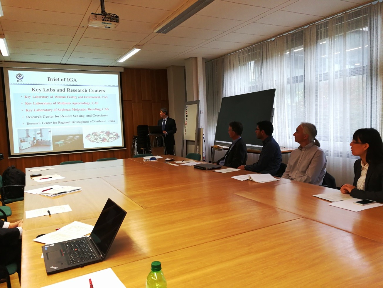 9月21日,代表團(tuán)一行訪問了哥廷根大學(xué)林業(yè)科學(xué)學(xué)院,院長EdzoVeldkamp教授對我所代表團(tuán)來訪表示了熱烈歡迎。何興元所長在座談會上做了關(guān)于“Research Program in IGA, CAS: An Overview”的報告,介紹了我所概況、學(xué)科領(lǐng)域、研究平臺及對外合作交流情況。林學(xué)院Kerstin Wiegand教授、Oliver Gailing教授、HolgerKreft教授、Peter Annigh?fer博士分別作了專題報告,雙方針對相關(guān)研究內(nèi)容進(jìn)行了廣泛而深入的探討。德方科學(xué)家對我所的研究平臺及研究內(nèi)容非常感興趣;在開展有關(guān)研究領(lǐng)域、人才交流、項目申請、野外平臺建設(shè)等方面達(dá)成共識,計劃近期簽署科技合作協(xié)議。