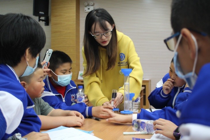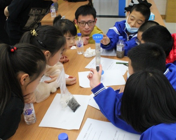 現(xiàn)場(chǎng)的實(shí)驗(yàn)分為六個(gè)小組,每個(gè)小組由研究生志愿者作為實(shí)驗(yàn)老師,進(jìn)行現(xiàn)場(chǎng)指導(dǎo)。別開(kāi)生面的科學(xué)實(shí)驗(yàn)演示、手腦并用的互動(dòng)環(huán)節(jié)、開(kāi)發(fā)創(chuàng)造性思維的提問(wèn)環(huán)節(jié),讓同學(xué)們?cè)谳p松的氛圍中親歷探究過(guò)程,獲得科學(xué)知識(shí),培養(yǎng)了熱愛(ài)科學(xué)、求真務(wù)實(shí)、友愛(ài)協(xié)作的科學(xué)精神,受到學(xué)生和老師的熱烈歡迎。