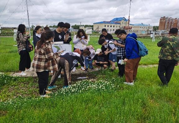17日-20日,在海倫站監測人員的指導下,學生們親自體驗、開展了多項監測工作,旨在通過實地調查,了解野外水分、土壤、氣象和生物等要素的監測和實驗方法,培養他們對相關專業的興趣,提高發現問題和解決問題的能力。學生們分成11個實習小組,依次完成了氣象觀測、試驗田農作物生育期調查、土壤容重和含水量測定等實習內容,親身實踐的樂趣激發了學生們學習熱情。