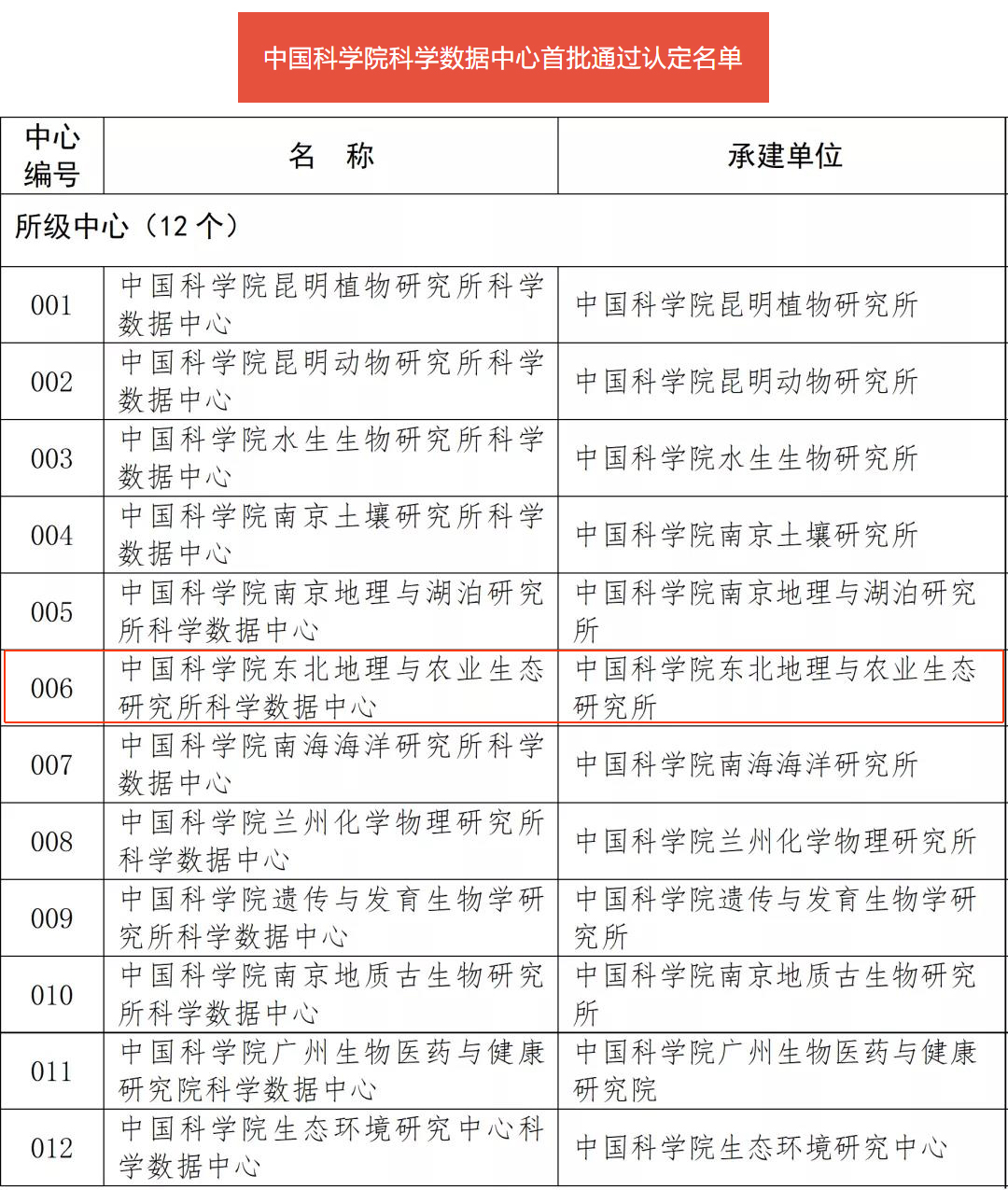 東北地理所科學數(shù)據(jù)中心入選首批通過認定的所級中心。首批通過認定的31家院科學數(shù)據(jù)中心包括1個總中心、18個學科中心、12個所級中心。首批通過認定的所級中心有:昆明植物所科學數(shù)據(jù)中心、昆明動物所科學數(shù)據(jù)中心、水生生物所科學數(shù)據(jù)中心、南京土壤所科學數(shù)據(jù)中心、南京地理所科學數(shù)據(jù)中心、東北地理所科學數(shù)據(jù)中心、南海海洋所科學數(shù)據(jù)中心、蘭州化物所科學數(shù)據(jù)中心、遺傳發(fā)育所科學數(shù)據(jù)中心、南京地質(zhì)古生物所科學數(shù)據(jù)中心、廣州健康院科學數(shù)據(jù)中心、生態(tài)環(huán)境中心科學數(shù)據(jù)中心。