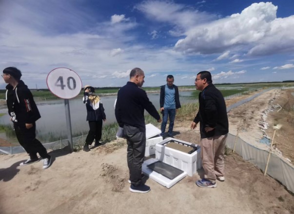 在松嫩平原西部鹽堿濕地生態(tài)研究站濕地萬畝示范區(qū),調(diào)研組觀看了牛心套保生態(tài)保護與恢復(fù)宣教片,劉宏遠博士詳細介紹了“黑土糧倉”科技會戰(zhàn)牛心套保示范點的主要技術(shù)模式,任務(wù)設(shè)置及核心技術(shù)進展和成績,現(xiàn)場展示了鹽堿沼澤濕地合理利用關(guān)鍵技術(shù)1齡蟹種培育的大眼幼體堿水馴化及投放過程。李曉宇副研究員、張鳳偉副局長及王利民場長就中科院東北地理所與牛心套保葦場過去20年的重要合作進展和成果與調(diào)研組進行了交流。