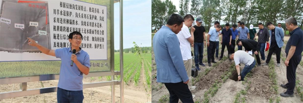 6月17日上午,專家組及項(xiàng)目團(tuán)隊(duì)在曙光農(nóng)場進(jìn)行實(shí)地研討,實(shí)地講解了“黑土糧倉”科技會(huì)戰(zhàn)專項(xiàng)工作中試驗(yàn)示范的新品種、新技術(shù)、新模式,實(shí)地踏查核心技術(shù)示范樣板田。項(xiàng)目負(fù)責(zé)人劉煥軍研究員講解了小流域治理技術(shù);姜佰文教授、劉峰研究員、李彥生副研究員、魏占波和王玲莉等技術(shù)專家分別對白漿土旱田障礙消減的各項(xiàng)改良技術(shù)做以詳細(xì)介紹。隨后,專家組及項(xiàng)目團(tuán)隊(duì)一行現(xiàn)場觀摩了兩個(gè)核心示范地塊的實(shí)際情況,就白漿土土壤剖面進(jìn)行了交流與探討。專家組高度肯定了“黑土糧倉”科技會(huì)戰(zhàn)的優(yōu)勢,對于推進(jìn)白漿土旱田障礙消減與地力提升模式,促進(jìn)綠色可持續(xù)發(fā)展具有重要的先導(dǎo)意義。