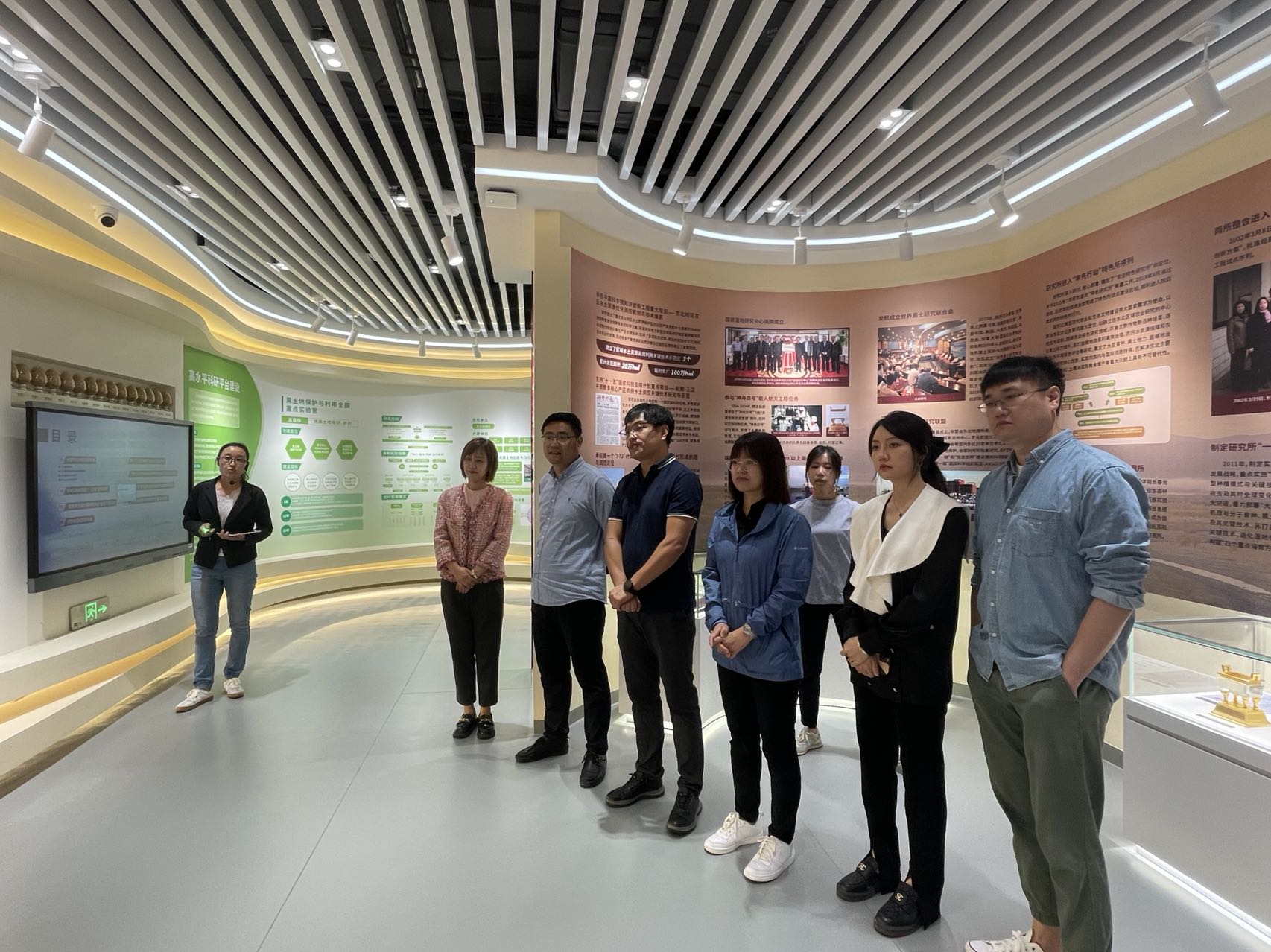 三所辦公室的同志們首先參觀“黑土糧倉”科技會戰指揮中心宣傳展示平臺,了解東北地理所歷史沿革、平臺建設、科研項目、人才智庫和黨建創新等內容。