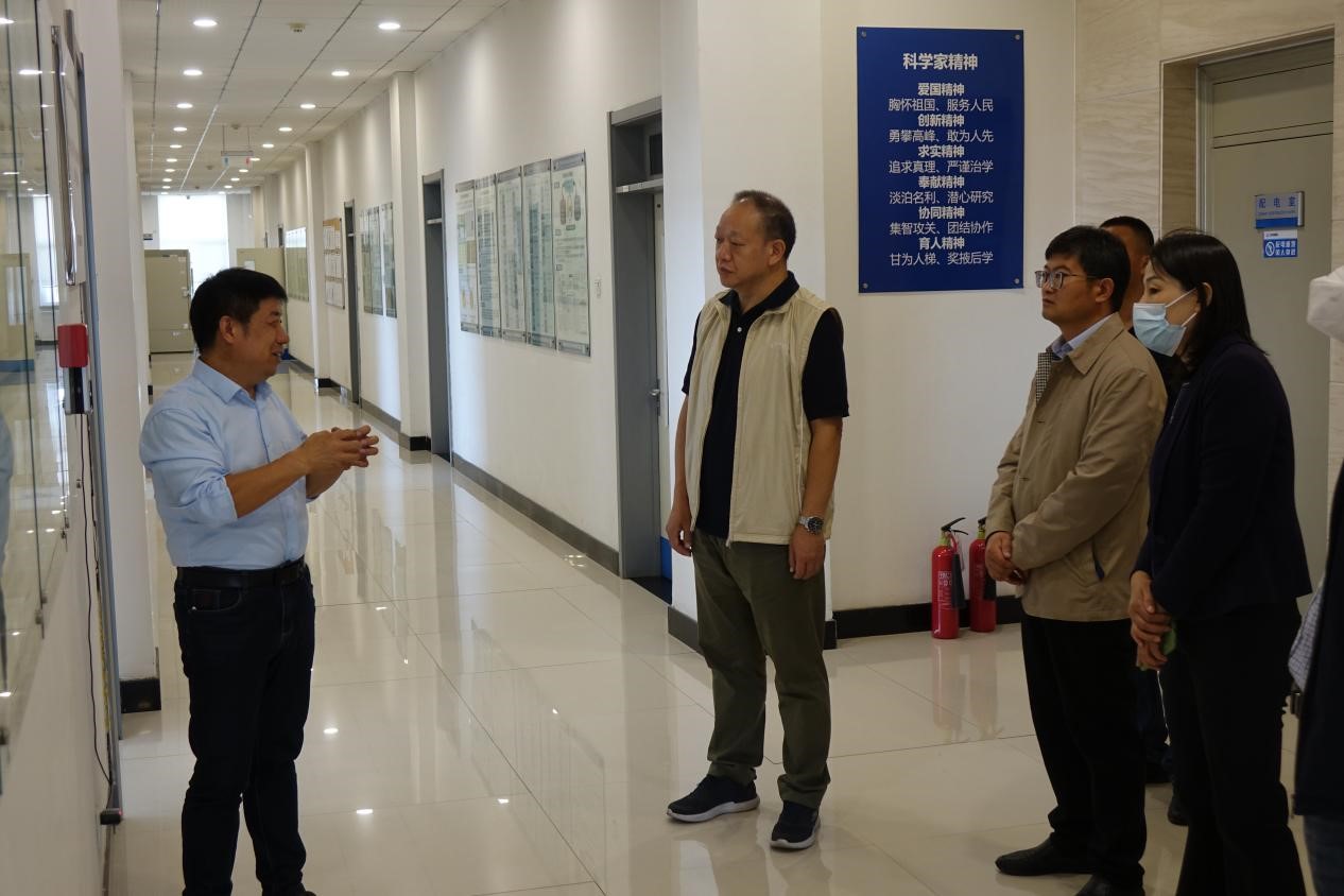 田濤一行首先調(diào)研了大豆分子設(shè)計育種實驗室,馮獻(xiàn)忠介紹了實驗室概況,詳細(xì)介紹了團(tuán)隊建設(shè)、項目進(jìn)展以及大豆品種轉(zhuǎn)化推廣情況。