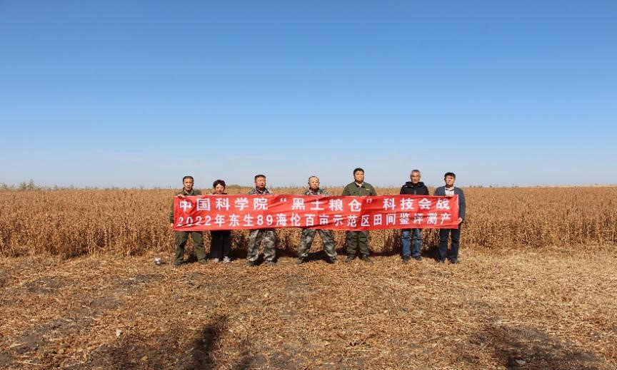 今秋喜報(bào)又傳。2022年秋季,來(lái)自黑龍江省農(nóng)業(yè)科學(xué)院、綏化市農(nóng)業(yè)技術(shù)推廣中心、雙鴨山市質(zhì)量技術(shù)檢測(cè)中心等單位的12位省級(jí)專(zhuān)家分成2組測(cè)產(chǎn),專(zhuān)家組分別在黑龍江省海倫市長(zhǎng)發(fā)鎮(zhèn)百畝示范田和友誼縣一分場(chǎng)百畝示范田分別對(duì)中國(guó)科學(xué)院“黑土糧倉(cāng)”科技會(huì)戰(zhàn)項(xiàng)目—大豆新品種“東生89”和中國(guó)科學(xué)院重點(diǎn)部署項(xiàng)目“大豆高產(chǎn)穩(wěn)產(chǎn)分子基礎(chǔ)與品種培育”——大豆新品種“東生201”百畝示范田進(jìn)行實(shí)地測(cè)產(chǎn),專(zhuān)家組嚴(yán)格按照理論測(cè)產(chǎn)和實(shí)際測(cè)產(chǎn)結(jié)合方法,通過(guò)隨機(jī)抽樣選點(diǎn)、稱(chēng)重量、量密度、田間收獲等方式,現(xiàn)場(chǎng)測(cè)量,測(cè)產(chǎn)結(jié)果矮桿耐密品種“東生89”在海倫市示范田畝產(chǎn)256.99公斤,“東生201”在友誼農(nóng)場(chǎng)百畝示范田畝產(chǎn)270.8公斤,均超額完成創(chuàng)高產(chǎn)的既定目標(biāo)。
