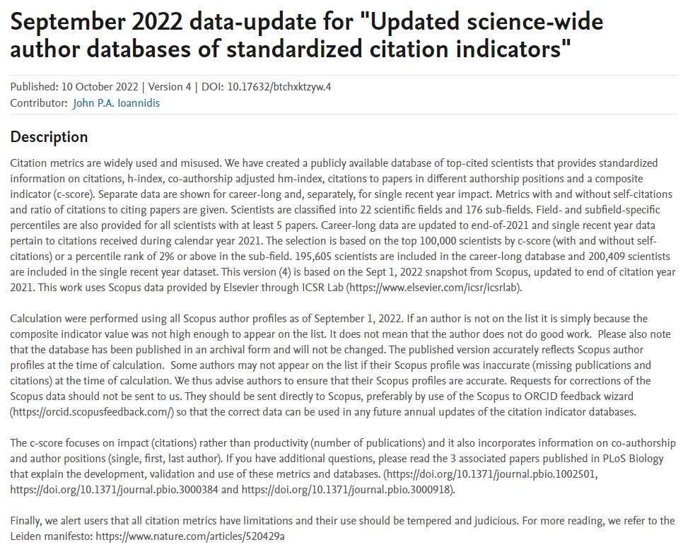 全球前2%頂尖科學(xué)家榜單是由斯坦福大學(xué)John P.A. Ioannidis教授團隊發(fā)布,此次發(fā)布的為2022年版本,也是該團隊公布的第四版,所有指標(biāo)與數(shù)據(jù)均公開并自由下載,是目前最具公信力的一項學(xué)者學(xué)術(shù)影響力榜單。