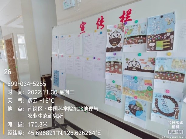 11月30日,土壤資源與利用學科組在哈爾濱所區宣傳欄張貼了世界土壤日官方宣傳海報,海報展示了2022年世界土壤日主題、土壤肥力形成與提升、土壤肥力與人體健康等內容,使哈爾濱所區職工和研究生對2022年世界土壤日有了更深的認識。此外,土壤資源與利用學科組在12月1日至3日期間,在疫情防控允許的條件下,在所住小區也進行了世界土壤日宣傳海報的張貼,并為公共講解世界土壤日的由來以及土壤在糧食生產的中的重要作用,促進了公眾關注和保護土壤意識的提升。