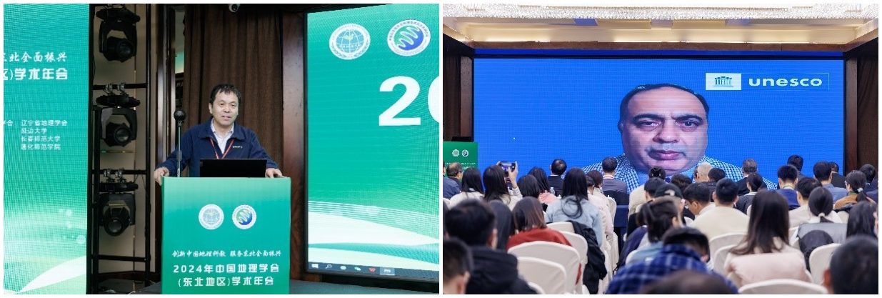 第二階段的會議主旨報(bào)告會由東北師范大學(xué)地理科學(xué)學(xué)院院長白娥教授主持。中國科學(xué)院青藏高原研究所副所長李新研究員、中國科學(xué)院新疆生態(tài)與地理研究所副所長孫福寶研究員、中國科學(xué)院地理科學(xué)與資源研究所李召良研究員、東北師范大學(xué)楊青山教授、遼寧師范大學(xué)孫才志教授、中國科學(xué)院東北地理所姜明研究員分別以中國冰凍圈變化、融合深度學(xué)習(xí)與物理模型的全球洪水模擬與風(fēng)險(xiǎn)預(yù)估、全球土地覆被變化生物物理反饋的溫度效應(yīng)、基于承接產(chǎn)業(yè)轉(zhuǎn)移視角的經(jīng)濟(jì)欠發(fā)達(dá)城市存量用地治理對策、關(guān)于加快形成海洋經(jīng)濟(jì)新質(zhì)生產(chǎn)力、黑土地保護(hù)中的地理學(xué)問題為主題作大會報(bào)告。