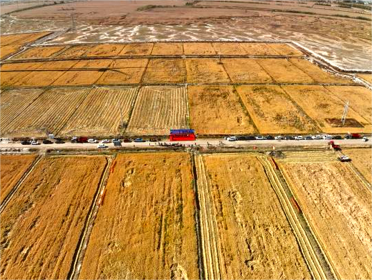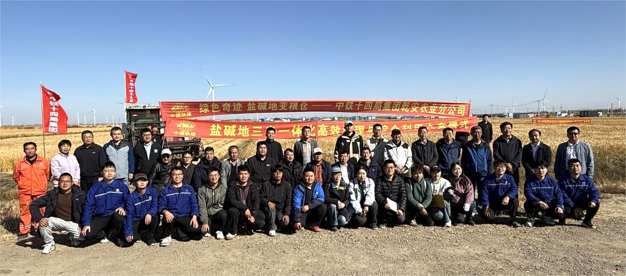 為進一步推進鹽堿地“三良一體化”高效治理與綜合利用大安模式的推廣應用,吉林大安農田生態(tài)系統(tǒng)國家野外科學觀測研究站團隊與中鐵十四局集團有限公司聯合于乾安水字鎮(zhèn)鹽堿地治理項目區(qū)建立試驗示范基地。10月11日,大安站與中鐵十四局乾安分公司聯合在乾安示范基地成功召開了新墾鹽堿地“三良一體化”高效治理與綜合利用專家測產現場觀摩會。
