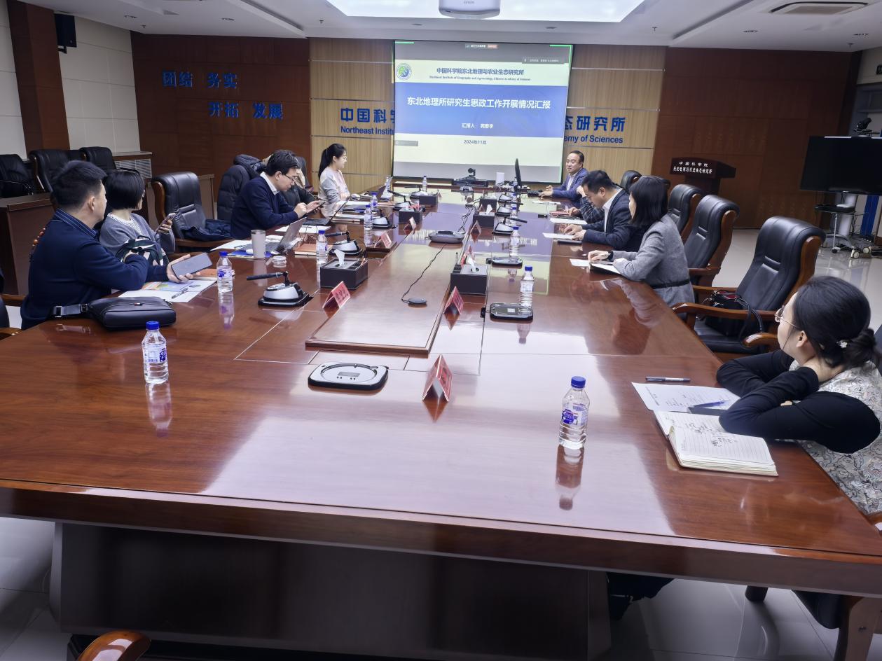 隨后,苑春宇代表東北地理所做研究生思想政治工作情況匯報,詳細介紹了東北地理所在研究生思想政治建設、輔導員隊伍、導師隊伍、心理安全、畢業生就業等方面的工作。匯報結束后,與會人員圍繞思政工作、安全保障、就業指導、導師隊伍建設、輔導員隊伍建設等方面進行了深入討論和交流。
