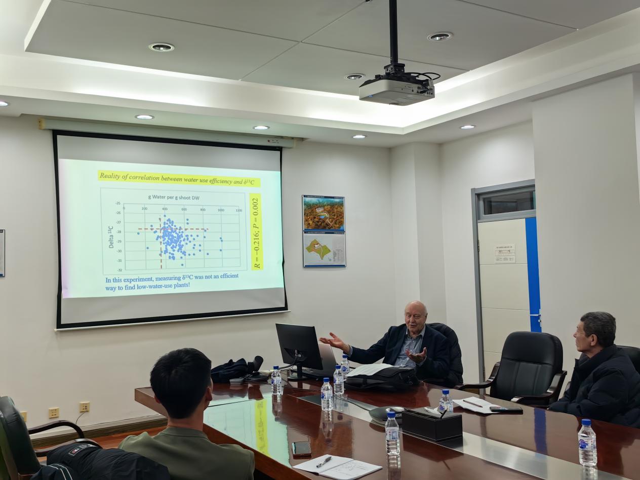 報告會上,Cory Matthew教授分別從植物分蘗大小和密度之間的補償、種子頭為下一季嫩芽提供營養、植物分蘗形態影響根系生長季節性、植物耐旱性等四個方面介紹了他的研究成果和最新的科研進展。報告結束后,Cory Matthew教授與參會師生進行了深入的互動交流,會場氣氛熱烈。報告激發了大家的科研興趣,開拓了科研視野,與會師生獲益匪淺。