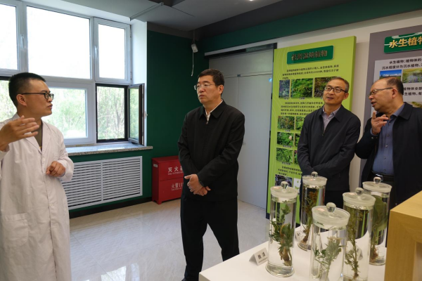 馬延峰首先來到農(nóng)業(yè)樓鹽堿地農(nóng)業(yè)研究中心,楊帆高級工程師系統(tǒng)介紹了蘇打鹽堿地治理關(guān)鍵技術(shù)、土壤改良劑研發(fā)與利用、耐鹽堿水稻、大豆、羊草等作物品種選育及鹽堿地生態(tài)修復(fù)工程實(shí)施等工作情況和科研進(jìn)展。