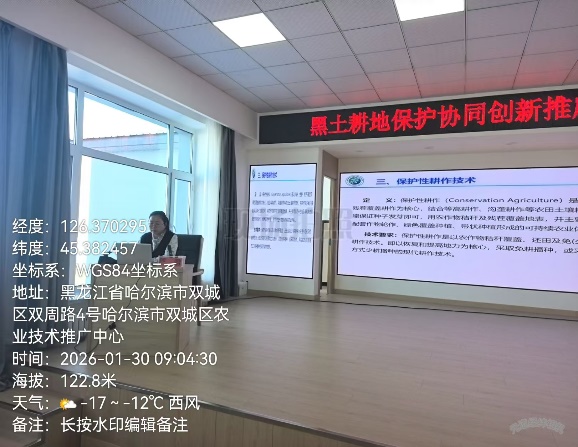 1月30日,嚴(yán)君在哈爾濱市雙城區(qū)講解了科學(xué)整地的具體方法,包括不同土壤類型下的深耕、旋耕、耙地,有機(jī)肥、生物炭及秸稈還田等操作技術(shù)要點(diǎn),及如何通過合理整地方式改善土壤結(jié)構(gòu),提高土壤保水保肥能力及長效提升土壤地力。為雙城區(qū)的農(nóng)技人員提供了一套科學(xué)、實用的黑土區(qū)旱地整地技術(shù)方案。
