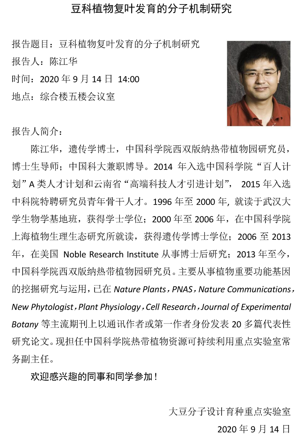 來源:大豆分子設(shè)計(jì)育種重點(diǎn)實(shí)驗(yàn)室 | 發(fā)布時(shí)間:2020-09-14 | 【 大 中 小 】