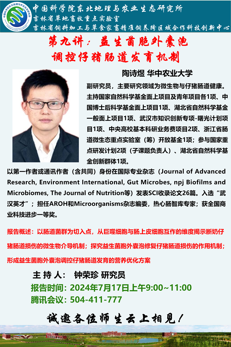 益生菌胞外囊泡調(diào)控仔豬腸道發(fā)育機制-陶詩煜 副研究員