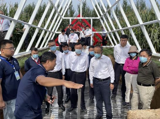 張濤一行在吉林省副省長韓福春等“黑土糧倉”科技會戰(zhàn)工作領(lǐng)導(dǎo)小組成員,各市(州)、縣(市、區(qū))主要負責人的陪同下,現(xiàn)場觀摩了梨樹黑土地博物館、“黑土糧倉”科技會戰(zhàn)萬畝核心示范區(qū)、盧偉合作社、高家村“梨樹模式”研發(fā)基地、富民種業(yè)有限公司,考察了保護性耕作技術(shù)研發(fā)情況。關(guān)義新研究員和敖曼副研究員向張濤一行詳細匯報了保護性耕作技術(shù)示范推廣的工作進展,包括成熟技術(shù)的優(yōu)化集成、新技術(shù)的引進評估、綜合技術(shù)的示范推廣等。
